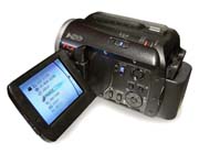 Ergonomie diskových videokamer. První základní odlišností je tady už úplná absence hledáčku - jež bude mnohými asi nepochopena (dáváme mínusový bodík) - ale uživatelům ve stupni výkonnosti domácí amatérské video nejspíše vadit nebude. Přístroj se dá ostatně zapnout i vypnout jen pouhým otevřením nebo zavřením bočního LCD-panelu, má-li samozřejmě zvolen jiný než vypnutý stav hlavního voliče-vypínače. Oproti kartovým verzím Everio MC200 a MC500 se diskové mašinky drží zcela klasicky a do ruky padnou jako ulité. A jak tak tyto mašinky nemají vůbec žádný kukr, nechají se bez vyklopeného LCD-panelu zapnout pouze do přehrávacího módu, takže ani natáčení poslepu - jak to šlo např. u druhdy recenzované miniatury Sony DCR-PC55 - není možné (natáčel jsem s otevřeným LCD, brrr). Transfokátor má velmi titěrný (ale použitelný) ovládací čudlík a kromě spouště u palce už na pravou ruku uživatele nezbývá nic. Hned v následujícím odstavci si naznačíme, že ani levička nemá u HDD-kamer přebytek práce, takže milovníkům početných hejblátek a hračičkům s láskou k přehršli ovládacích možností diskové videokamery asi nenabídnou to pravé…