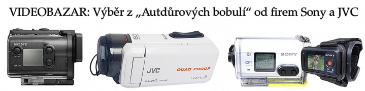 Bleskový odstavec Full-HD FAJNŠMEKR. Načíná to tu černý Canon HF200 bez hledáčku, jde se přes DJI OSMO a již KRASAVICE s PROFESIONÁLNÍM ovládáním: Canon XF200zmíněnou Sony HDR-TG3 a následují disky Sony HDR-SR5 a SR1 (těch máme více) a vedle „Autdůrovky“ JVC GZ-R445W tu jsou vyspělé HDR-CX410, HDR-XR500 i 520; a pak HDR-PJ420 coby solidní a dobře osazený strojek s projektorem bez hledáčku. Na řadu jdou fešné Autdůrovky coby Sony HDR-AS50 (těch máme více - a i Displej může být) a s „Displejem jako BT-dálka“ vyspělý stroj HDR-AS100VR. Autor článku používá osobně vždy a rád některé z těchto prcků na cyklo-výletech. A když se podaří, zkusím pár kuriozit sestavit do jednoho klipu, aby byla „Švanda“… Smějící se