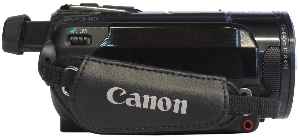 Canon HFS21 v bočním pohledu zprava (Kliknutí zvětší)Canon HF S21 má výbornou ergonomii, s poznámkou o běžné ruce recenzenta. Dovolím si po delší době uvést míry takové (mojí) běžné ruky, s vírou, že čtenářky ani čtenáři nebudou tyto rozměry vztahovat k žádným dvojsmyslnostem (:-D): Zápěstní rýhu od dlaně směrem k lokti mám 19 cm daleko od vrcholu prostředníčku a roztažená dlaň od „karatistické hrany“ ke konci palce napnutého do strany měří 16,5 cm. Majitelé RJL (zkratka Ruky Jako Lopaty) nebudou stejně nadšeni, ale prostě si musí vyzkoušet stroječek před koupí (obtížně ve virtuálním „obchodě“, proveditelněji v kameňáku). Klasický zápěstní řemínek mi sedí, posuvná kolíbka pro ZOOM padne, kam má, spouště pro videozáznam (na palec) i fotografování (za transfokátorem) jsou na svých místech, jak se patří. Hledáček má solidně výsuvný okulár a jeho očnice je jakžtakž tolerovatelná, přesto si představuji už nyní zástup kutilů, kteří si jej budou nějak dobastlovat, ponejvíce asi gumovými mušlemi ze starších kamer. K doplnění čísel z předchozího odstavce zbývá přepočet ohnisek na kinofilm - 43,5-435 mm pro video a 39,9-399 mm pro foto - a taky světelnost objektivu, kterou producent udává f1,8 až f3,0. Další údaje nalezne čtenář níže…