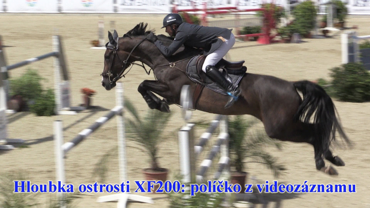 . Tady musím zmínit, že před uchopením jsem se asi půl hodiny vrtal ve všemožných nabídkách, abych alespoň trošku zkontroloval, co jsem jako lehounce poučený laik schopen zvětřit. Všechno v pořádku. Automat s možností vřazení mých pohmatů spuštěn, kamera zapnuta, indikace blikají (nebo prostě svítí) a já mačkám REC číslo jedna (to je to u pravého palce). Ale ouha: po zhruba 40ti vteřinách mi displej hlásí plnou mezipaměť s tím, že se zápis ukončuje. Dočetl jsem upozornění a pochopil, že CF-karta si žádá inicializaci, jinak mi dá košem. Realizuji požadavek a pokračuji v nahrávání. Mezinárodní skokové závody v Olomouci mají proměnlivé počasí a já se snažím vybírat podobné podmínky (současně si testuji v jezdeckém areálu i Sony CX900, jednoduše asi zapálený blázen
