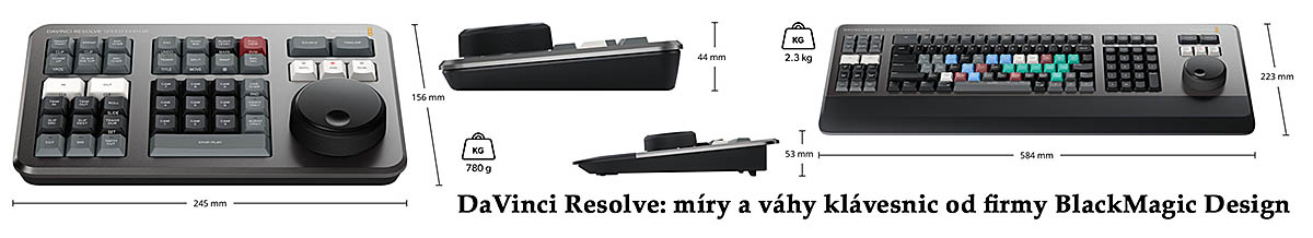 Míry a váhy speciálních klávesnic k DaVinci Resolve od BMD