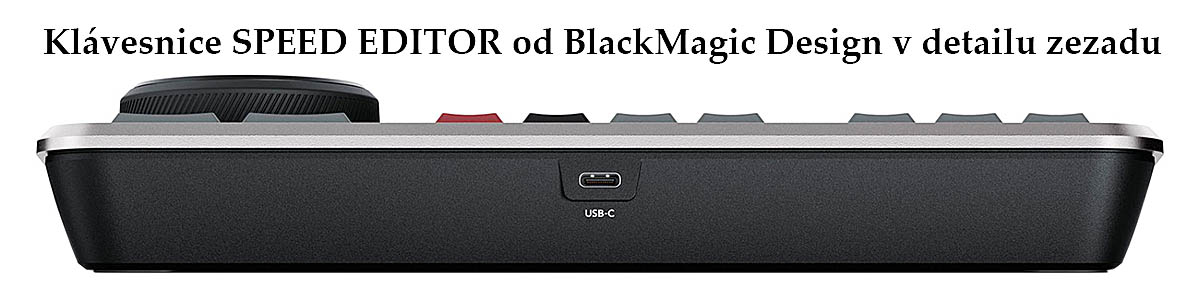 SPEED EDITOR v detailu těla zezadu: zdířka USB-C