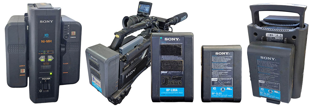 Akumulátor a nabíječka. Autor článku má k dispozici DVA druhy kapacit; s paticí označenou jako Sony BP-L a BP-GL. Velikosti a kapacity obřích akumulátorů Sony BP-L a BP-GLJe patrné z obrázků: velikostí se liší zásadně, kapacitou jakbysmet. BP-L90A má psáno při napětí 14,4V úctyhodných 8,1Ah, tedy pravděpodobně s rezervou pro startování (malých) motocyklů. BP-GL65 pak dává 4,4Ah, což oproti amatérským článkům u kamer trčí hodně vysoko. Doplním, že třeba tříhodinová baterie Sony NP-FV70A (AX53 atd.) má 1,9Ah při 7,3V, což kupeckými počty logiky k hladině napětí vychází asi na 1Ah přepočtu na cca 14 Voltů. Neboli i menší AKU je asi 4,5x mocnější oproti zmíněné kapacitě amatérského AKU FV70A. Zcela mimo amatérský segment je i patice a duální nabíječka: viz obrázky…