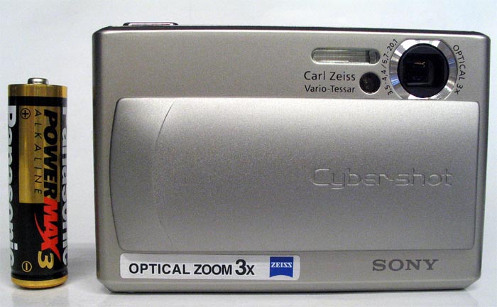 Z naší čtveřice popisovaných fotoaparátů je jedná o nejhůře zařaditelný přístroj. Elegantní design se zde snoubí s miniaturizací, jež je pro značku Sony vcelku vlastní. Na svoje udávané pidi-rozměry 91x21x60mm (hmotnost vč. AKU je 180g) nabízí velmi dobrou výbavu - vysoké rozlišení CCD 5,1MPx, 3násobný optický ZOOM (6,7-20,1), skvělý displej a docela precizní MPEG-video. Logo na optice Carl-Zeiss by mělo být vedle pověsti vůdce světového Know-How elektroniky Sony předpokladem dostatečné kvality k pořizování pěkných snímků i náhražkového (?) videa VGA 640x480 - a to snad i nadstandardní pro tuto mini-kategorii. V útrobách elegantního přístroje je uložen malý CCD snímač s úhlopříčkou 1/2,4", už zmíněným vysokým rozlišením 5milionů bodů a maximální DF 2.592x1.944 bodů, což se mimo jiné čtenář dozví i zde…