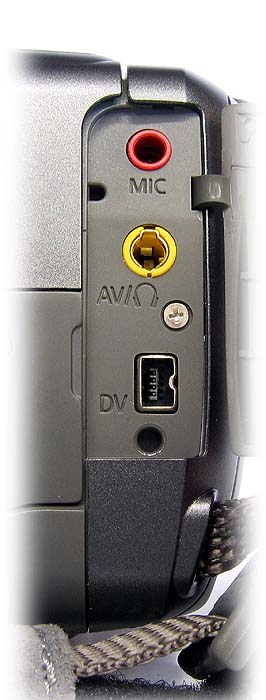 Konektory napravo: MIC, AV a DV (Klikni pro zvětšení)