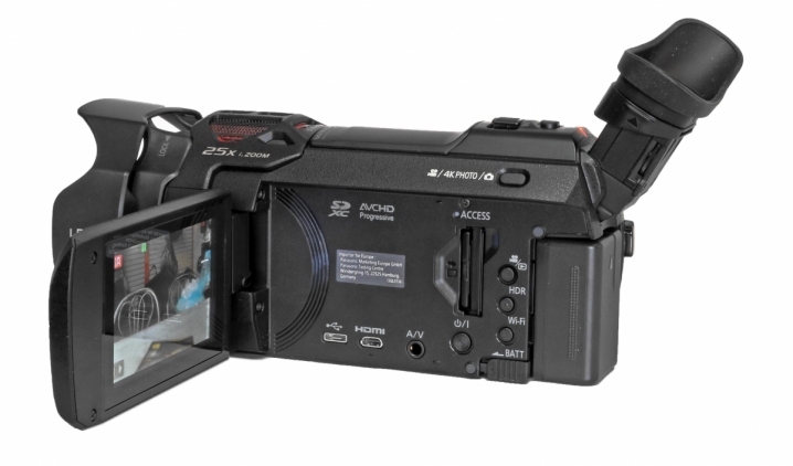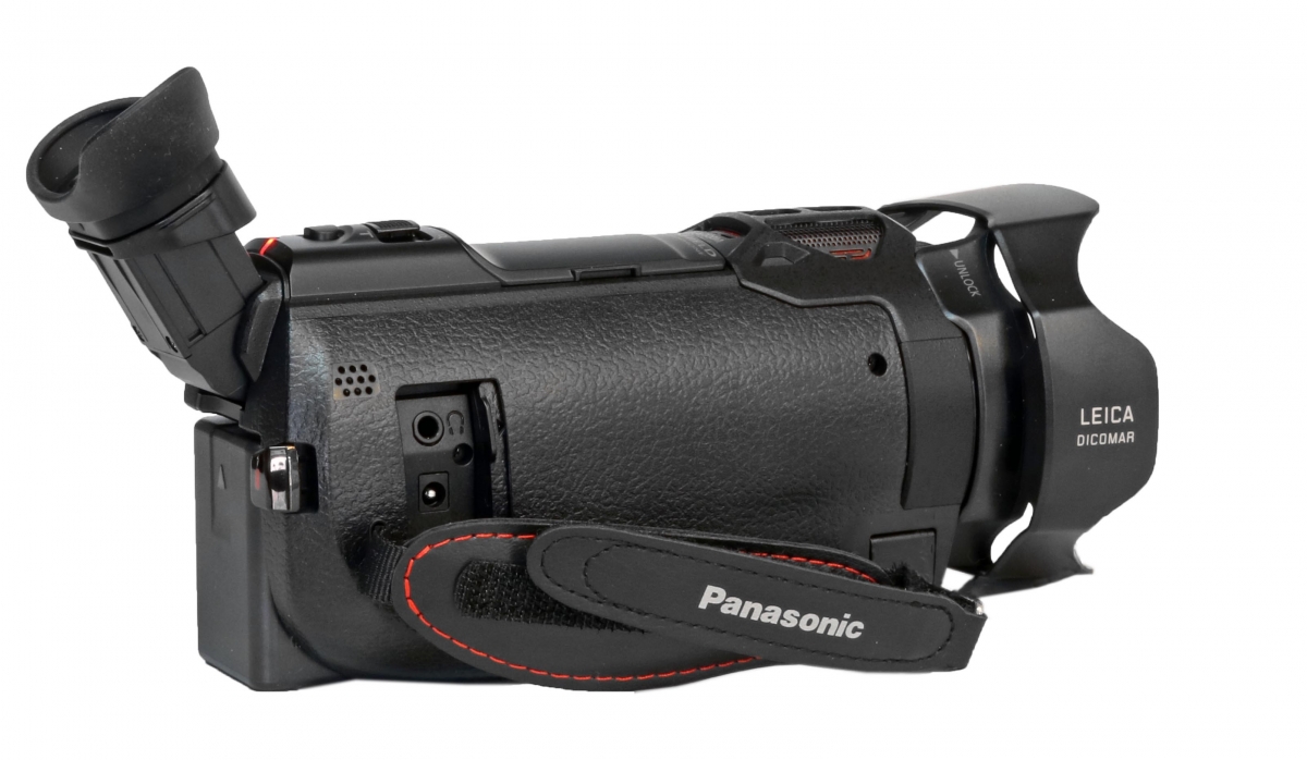 Ergonomie je zjevně velmi povedená, ale nečekal jsem od takového hráče nic jiného - jako obvykle. Vždyť produkce videokamer Panasonic je asi stejně stará, jako historie jeho konkurence. Bez možnosti posoudit to RJL (Rukama Jako Lopaty Smějící se) se mi to velmi dobře drží, všechno je standardně, kde má být. Manuální prvky jsou přístupny rýhovaným kolečkem pod levým předním rámečkem objektivu a ani jiná provozní ovládání nevyžadují vyklopení LCD-panelu. Transfokace se realizuje posuvným běžcem na horním šasi stroje a video-spoušť je tam, kde by ji uživatel čekal. Potud žádná překvapení. Zapnu mašinku, náběh standard, funkce OK a za sebe pochválím očnici hledáčku s gumovou mušlí: detail, který u takhle dostupné kamery nabízí jen Canon HF G25. Šup pod displej: USB a HDMI (2x micro verze), A/V-výstup (3,5 mm JACK), SD-slot, hlavní vypínač, přepínač režimů záznam vs. prohlížení a aktivace HDR a WI-FI. Foto-spoušť za posuvným prvkem zoomu uzavírá ovládání a zbývají zdířky. Ty, jež jsem zmínil pod LCD, doplňuje mikrofonní vstup (krytka vklíněna mezi objektiv a přední očko řemene) a napájecí se sluchátkovou zdířkou (ta by nemusela být pod dlaní, ale co už)…