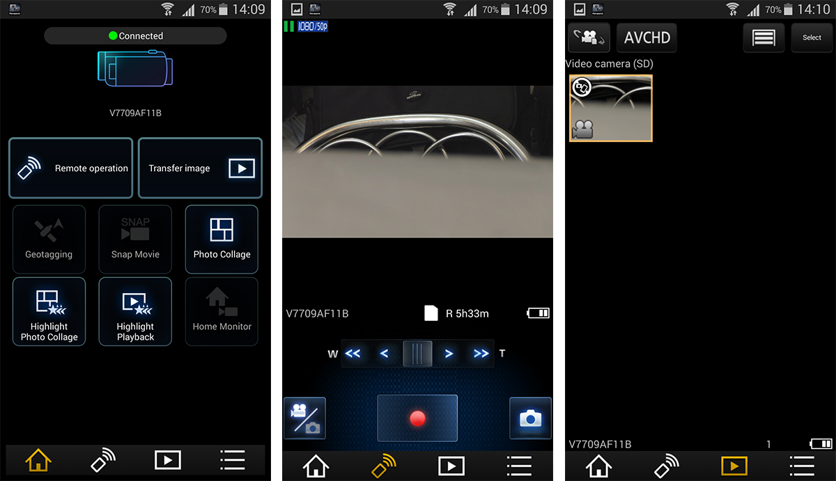 WiFi-funkce videokamery HC-V770 - popis a obrázek z osobního vyzkoušení s chytrým mobilem: