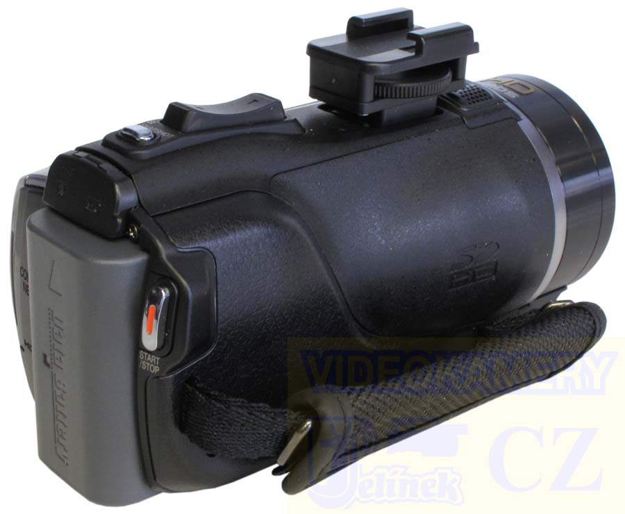 JVC GZ-HM400 v detailu shora (Kliknutí zvětší)JVC GZ-HM400 s redukcí botičky (Kliknutí zvětší)Možné doplňky k HM400. Protože novinka má volitelně připevnitelnou botičku příslušenství a nechybí jí ani mikrofonní zdířka, může si náročnější audio-fanda vybírat mezi výrobky např. australské firmy RØDE nebo ještě letitější značky Sennheiser. Eventuální volba originálního mikrofonu bude asi pouze o typu MZ-V8, který bude nejspíš drahý a hlavně nevyhlíží podle informací na čs. webu nijak zázračně. Doporučení výše zmíněných značek - první mimo jiné v mono- i stereo- provedení - bude jistě bez rizika. Případné světlo lze připevnit stejným systémem do botky, kdo by nutně potřeboval rozdvojku, a počká na další perlu z už úspěšně rozjeté malosériové výroby doplňků naší firmou (produktový letáček redukcí). Dalšími z věcí pro fanoušky úplného kameramanství mohou být některý z velikostních druhů stativů, což je vzhledem ke zmíněné absenci hledáčku rozhodně podporou stability záznamů praktické ažaž. Bytelnou brašnu, stejně jako eventuální filtry nebo předsádky, ani nebudu zvl᚝ rozebírat, protože si o nich prakticky každý fanda oboru najde sám, co potřebuje…