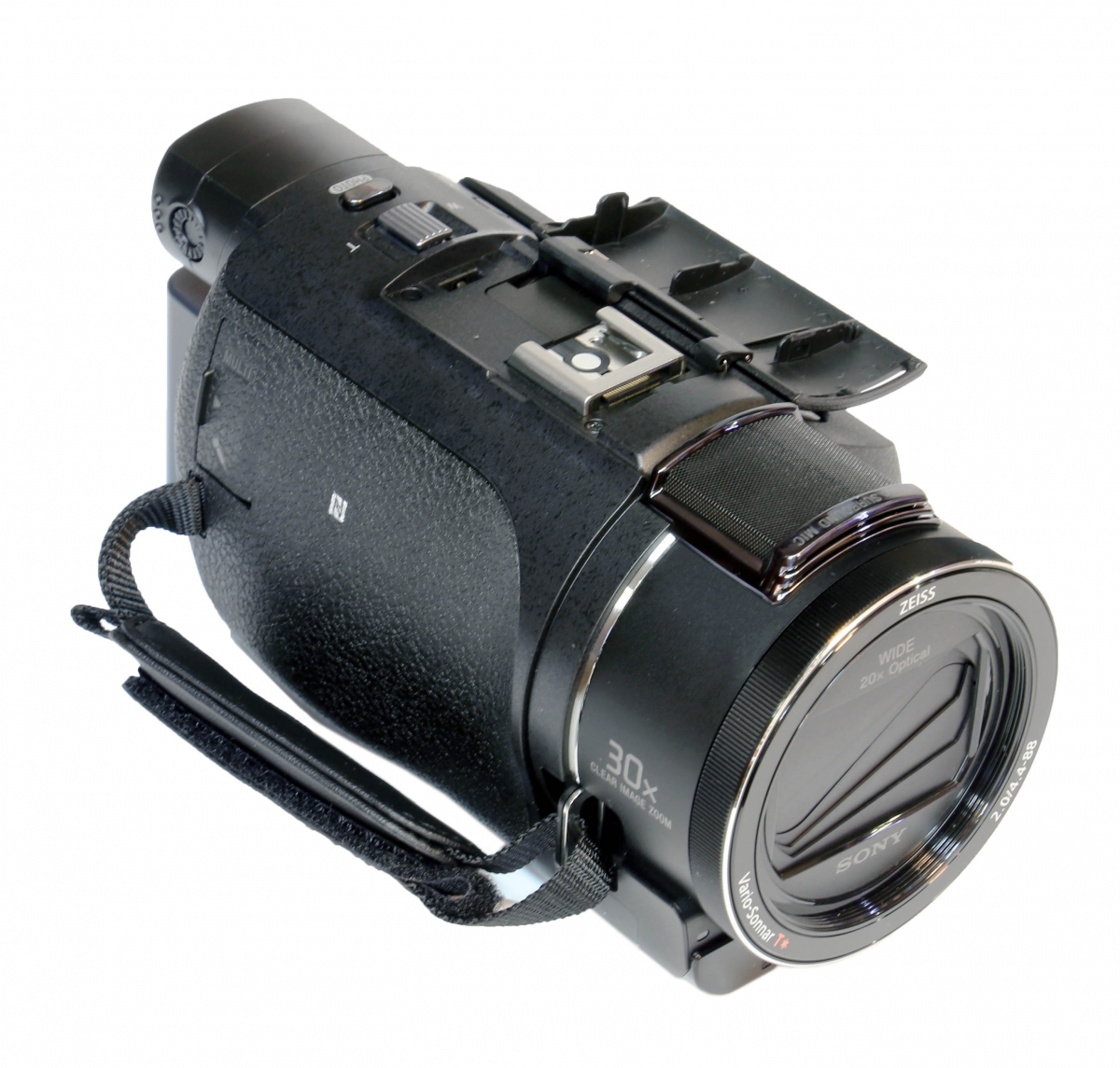 Ergonomie a přípojné zdířky. Normálně by mě asi nenapadlo spojit tato témata do jednoho odstavce, ale u této kamery jde o rozpor či spíše souvislost, takže jděme na to. ERGONOMIE této videokamery je VÝBORNÁ, až na detaily. Pomiňme, že za pořizovací cenu 26-30 tisíc lze obdržet i klasičtější kolíbku zoomu a neplísněme vývojáře za titěrnost regulace dioptrií pro oko, protože HLAVNÍ EXCESY jsou jinde. První, u nějž si nejsem jist - jak jsem psal už i v jiném článku - jestli si kdy konstruktéři Sony něco natočí po práci - je osazení VELMI DŮLEŽITÝCH zdířek pod ruku, vsunutou do zápěstního řemene! Fakticky se tak znemožní použití externího mikrofonu nebo napájení externím zdrojem (tzv. powerbankou) v terénu bez stativu (na němž to asi nevadí). Ano, pravoúhlý JACK-samec mikrofonu to částečně řeší, ale zůstává ono ALE. Ovšem druhým detailem je doslova VRAŽDA ergonomie: čtenář jistě pochopí komplikace držení stroje po odklopení krytky botičky: tam, kde se opírají prsty pravičky kromě ukazováčku - ten většina lidí mívá pro ZOOM - je obří místo, kde se může nacházet doplněk coby nasazený mikrofon či světlo (viz níže), ale MUSÍ tam být prsty: tedy logicky je tu pro ně jediné místo…