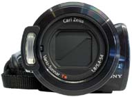 Přednímu dílu vévodí dominantně objektiv s popisem Carl-Zeiss Vario-Sonnar T* a vestavěným bleskem na pravoboku těla. Pravá strana přístroje neslouží (jak občas napíše i kolegyňka Lenka :-D) zhola k ničemu, přejděme tedy k zadnímu a hornímu dílu (na levou část a prostory pod LCD bude třeba samostatný odstavec). Zezadu se tedy ke krasavici přistupuje kvůli jejím oblým tvarům s velkou výhlubní pro akumulátor (s kamerou je dodáván NP-FH60 se signalizací plně nabitého na 103 minuty práce), nahrávací video-spoušti, hlavnímu vypínači a pod dvojicí krytek schovaným zdířkám mini-HDMI, dosti speciální AV-dírce a napájení/nabíjení DC IN. Horní obliny CX6ky jsou osazeny foto-spouští, mrňavým ovladačem transfokátoru a krom inteligentní (aktivní) botičky na doplňky z firemní stáje ještě tříkanálovými mikrofony s již výše zmíněnými schopnostmi. Kontrolky na indikaci zvolených režimů a také ke kontrole nabíjení mašinky jsou na oblé hraně horní a zadní části a jejich vizuální kontrola je tak možná z víc úhlů. Levá strana těla kamery sice také nemá žádná tlačítka, ale po nahlédnutí pod LCD panel je jasné, že tady je toho nejvíce…