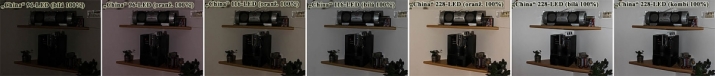 Následují tedy vcelku dosti podobné kvádříky s počtem 49 (7 x 7, scéna) a 8 x 8 = 64 diod (scéna), přičemž ten na LED-ky početnější typ lze variantně napájet i z externího adaptéru. Všechna světla jsem do scény nasazoval vždy na výměnnou destičku stativu, aby se dle možností dodržely stejné úhly svitu na scénu. Kromě poskládaných zmenšenin snímků scén (výše prvních 7 a níže "výkonnějších" 7) jsem nejpovedenější nasvícení vložil ve větším formátu 1200x900 bodů (klik PC-myškou) po třech snímcích vedle sebe zde níže, s čitelnějšími popisky.…