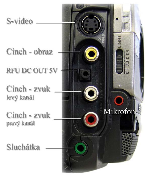 Detail konektorů DVD-kamery Hitachi (Klikni pro zvětšení)