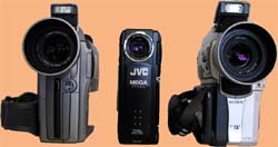 Přestože horní „hlavní srovnávací foto“ nabízí mezi nejmenšími kamerami i model DCR-IP5 experimentálního systému MICRO-MV firmy Sony, zůstávejme stále při „nejklasičtějším“ systému mini-DV, jenž zařadili do výrobního programu (naštěstí) všichni rozhodující výrobci. Firma Panasonic je pro tenhle příspěvek v poněkud zvláštní situaci: vyráběla sice "dlaňové" kamery v několika modifikacích, ale jeho výrobní sortiment nemá (nejméně dva roky zpět) žádný model této kategorie. JVC má zase zcela jinou pozici: přestože není v oboru videokamer nijak velikým hráčem (alespoň co se týče posledních několika let), její dlaňové modely jsou pojmem, jenž se při srovnávání opravdu vymyká vlastnímu sortimentu i pověsti své mateřské značky (k ostražitosti potenciálních zákazníků!)… Tak pojďme mrknout, který model vypadá nejzajímavěji a který se drží „lepším stylem“…