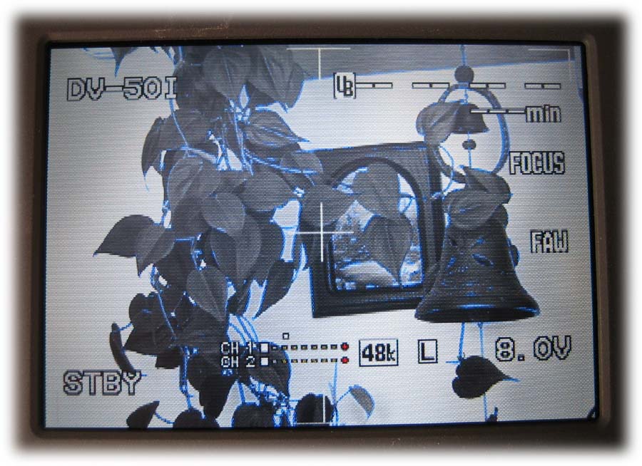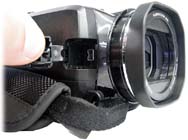 Detail DV-zdířky HD6 vpravo vpředu (Kliknutí zvětší)Oproti Trojce se mechanické ovládání krytky objektivu změnilo na hodinářskou automatiku, jakou používají i konkurenti, přisvětlující reflektorek se odstěhoval do Humpolce (respektive zmizel: nejspíš v rámci úspor :-D), mikrofonní zdířka se přestěhovala z přední dolní pozice dozadu nad akumulátor a ostatní konektory zůstaly rozmístěny nad jeho paticí i vpravo od něj při pohledu zezadu. Z levého výstupku s tlačítky světla a ostřícího asistenta zmizelo vše; a zde dokonce i samotný výstupek. Z botičky pro doplňky zmizela zase vložka, sloužící jako (celkem zbytečná) krytka sáněk a i.LINK se přestěhoval dopředu vpravo hned za objektiv. Celé přístroje působí vůbec v rámci současných trendů jako čímdálmíňvšeho, což mimoděk taktéž potvrzuje dojem nahých boků bez výstupků a tlačítek. Funkce FOCUS ASSIST nebo volby expozice, balance bílé barvy a ostrosti obrazu popisuje výborně světoznámá adresa i s názornými animacemi, co která funkce znamená; a jak ji kameraman může vidět na displeji přístrojů. V odkazované W-adrese je nutno odrolovat dolů a přejít přes první "gif-animaci", znázorňující AE-programy na displeji, přičemž doporučím čtenáři ještě dávku trpělivosti na zmizení (asi dobře zaplacené) reklamy. Na známý server odkážu ještě kvůli ukázce digitálních efektů a vyjmenování obsahu krabice…
