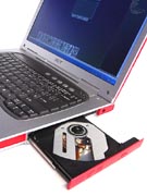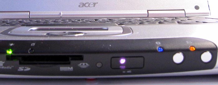 Jedeme okolo a nejdříve tedy doleva od přední hrany. Vedle standardních audio-zdířek je tu PCMCIA-slot s vysouvací záslepkou a hned vedle pak veleužitečné digitální rozhraní IEEE1394 (Fire-Wire-4pin), jež je - jen tak pro pořádek a kvůli častým dotazům - totéž, jako i-LINK u Sony. čtyři (!) porty USB s kompatibilitou 2.0 se asi budou taky hodit: zatím jsem do nich zapojoval hlavně větší fleš-disk na přenášení dat z velkého PC - myslím, že troška drobných "mobilních" rodinných i firemních digitálních dat bude občas k využití, a to nejen kvůli prezentaci digi-fotek nebo menších videí k chlubení... Zezadu jsou standardní přípojky včetně S-Videa, externího monitoru (udávají "až 2.048x1.536, 75Hz a CRT neprokládaný"...), tiskárny a taky zdířky síové karty a případného modemu. A jsme až vpravo (při pohledu zepředu samozřejmě): napájecí a současně nabíjecí konektor je vedle kouzelné DVD-mechaniky. Kouzelné v tom, že je tu vestavěna vypalovačka DVD se všemi formáty z třetího odstavce. Pro kopírování je ale logicky nutno ponechat kousek místa na disku - máme přece k dispozici jen jednu mechaniku - protože vypalovací SW si musí udělat tzv. obraz na disku a z něj pak po vložení prázdného média načíst (logicky) všechna data…