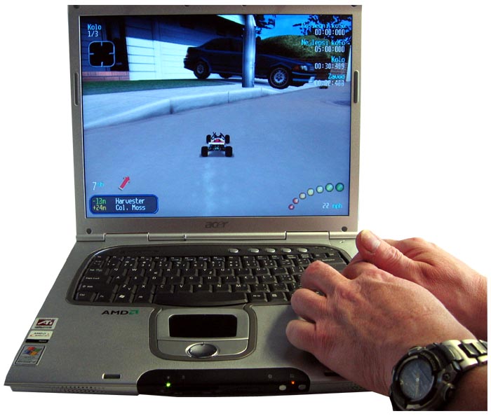 Myslíte, že by se vám tento Notebook nelíbil? Určitě NE, nejste-li hračička nebo fajnšmekr, jakým naopak - jako většina? - jsem nejspíše do jisté míry i já. Každý zapálený uživatel přece ví i to, že vlastnictví vyspělého přístroje nebo automobilu je - mimochodem - přečasto i otázkou jakéhosi pomyslného souboru dobrých pocitů a (dokonce) možná i duševního vztahu k oné nádherné "movitosti". Že by mi právě teď nerozuměli - mnozí - čtenáři? Myslím, že podobný názor by mohla mít "nadšená většina" uživatelů. NTBK Acer-Ferrari znamená tedy mobilní editaci těchto našich stránek, velmi (!) mobilní přístup do bank, vždy pohotové natažení videí či statických snímků na HDD Ferrari i s případným zpracováním, možnost krácení nudných chvil malými hrami a sledováním DVD anebo (třebas) samozřejmou možnost práce s elektronickou poštou kdekoli v terénu či vyhledání potřebné www-informace například v německém (anglickém?) velkoměstě při hledání hotelu a podobně. Zkrátka: výkonný a elegantní společník se solidní konfigurací - a krásně poplatný dnešní moderní době…