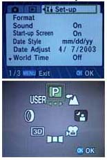 Ručního nastavování má mašinka překvapivě dosti: kromě běžné volby rozlišení a komprese (1-2-3 hvězdičky) následuje v přehledném MENU nastavení balance bílé barvy (automat, čtyři přednastavené režimy, plný manuál), ostření (MULTIPLE nebo SPOT), nastavení expozičního programu (AE Metering), citlivosti závěrky (v rozsahu AUTO/50/100/200), a dalších uživatelských nastavení. Z nich uvedu (popořadě) DIGI-ZOOM (zap./vyp.), prohlížení dílka po vyfocení Instant Review (v krocích „vyp./0,5s/1s/2s/3s/4s/5s“ !), dále jakési „rychlé prohlížení videozáznamu“ (toto v režimech „Off/2x/5x/10x/20x/50x/100x“), režim „3D Mode“ (Parallel/Cross), funkce individuálního (velice!) nastavení všech funkcí „Memory“, ostrosti (Sharpness), sytosti (Saturation), kontrastu (Contrast) a světlo-kompenzace („EV Compensation“). Snad jsem tímto odstavcem nastínil výjimečnou výbavu ve výjimečném (a to zase ukážou fotky) těle „Optia S“…
